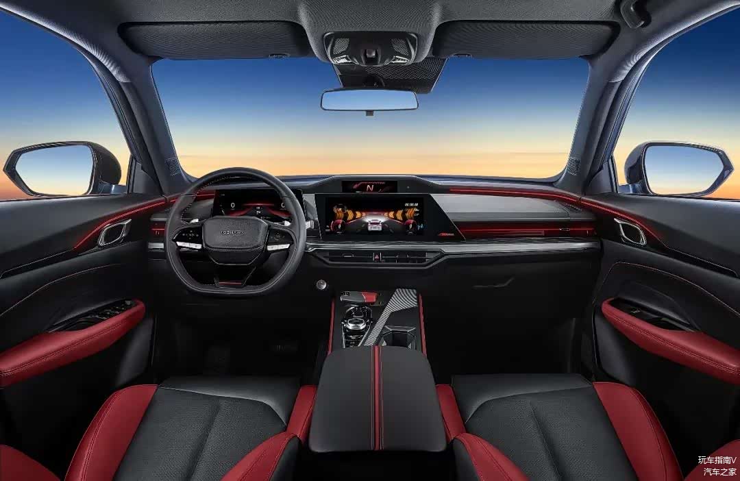 内饰部分,欧尚Z6蓝鲸2.0T采用了跃动红与星曜黑的双色搭配设计,再加上前排一体式运动座椅,让内饰更具运动感。