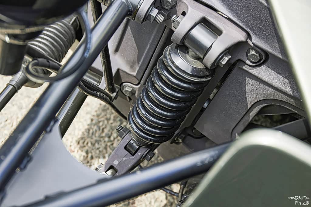 前交叉臂,后平衡杆,前后盘式刹车,轮胎规格:前130/90 R20,后195/65 R15