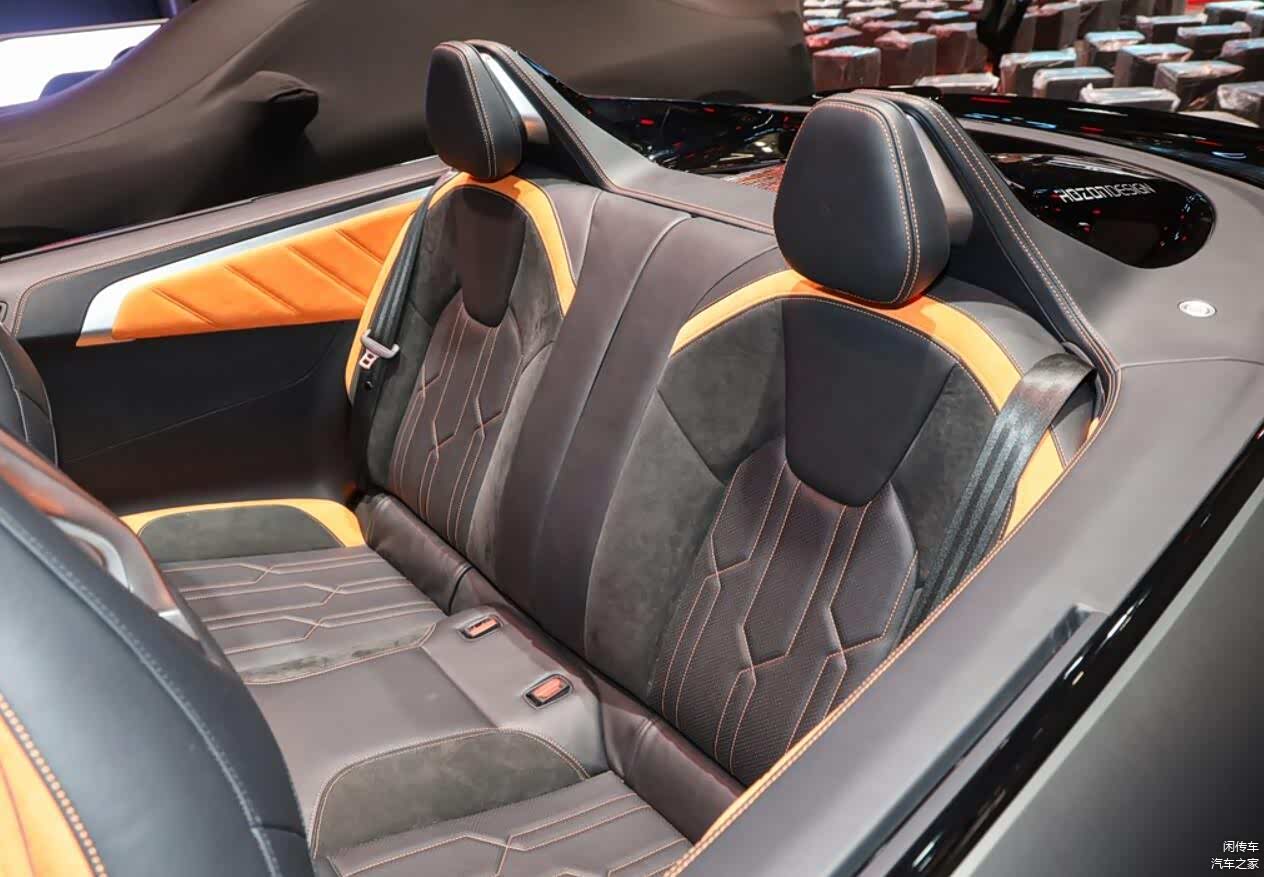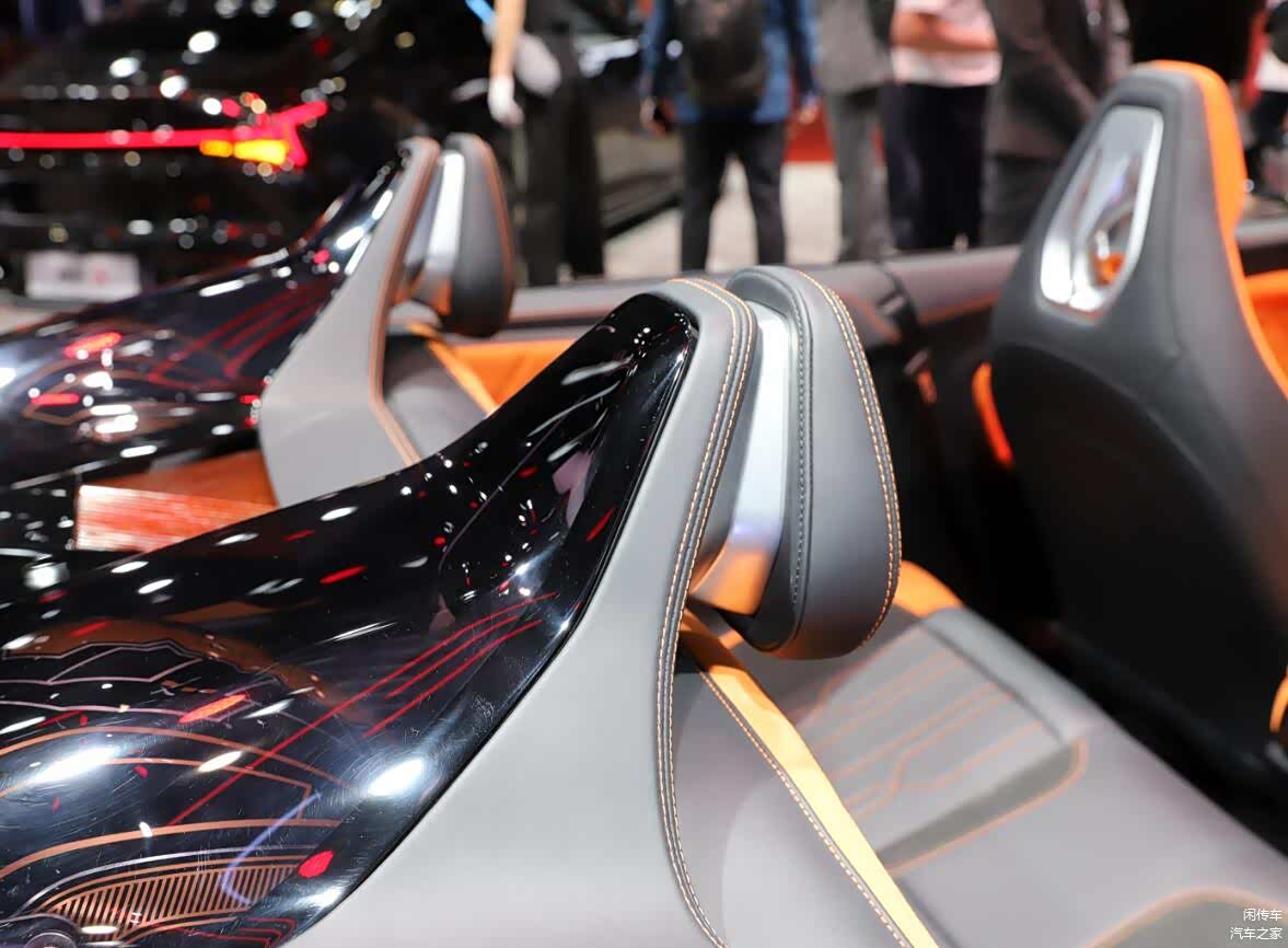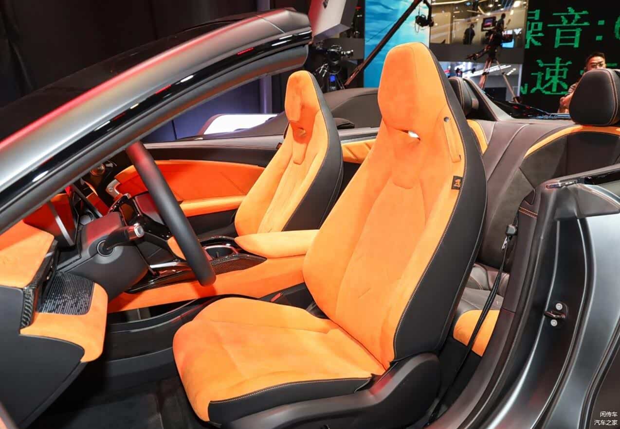 而在车尾部分,尾灯也采用了和大灯对应的环形结构,与硬顶版没有区别,但追加了翘起的小尾翼,增强了运动感。而后杠部分取消了硬顶版的环形结构,变为了更加夸张的扩散器,与整车的风格形成统一。在内饰部分,新车的设计层面当然也不会与运动版本有任何区别,依旧采用了较为简洁的悬浮式液晶屏,配液晶仪表盘组成双屏系统的设计理念,没有HUD也没有副驾驶屏幕,但通体橙色的内饰配色还是能刺激驾驶者的运动神经,同时新车依旧是四座布局,这一点要比MG Cyberster更具灵活性和实用性,头枕后方还有着大面积黑色工艺装饰的防滚架,造型进一步增强了设计感。