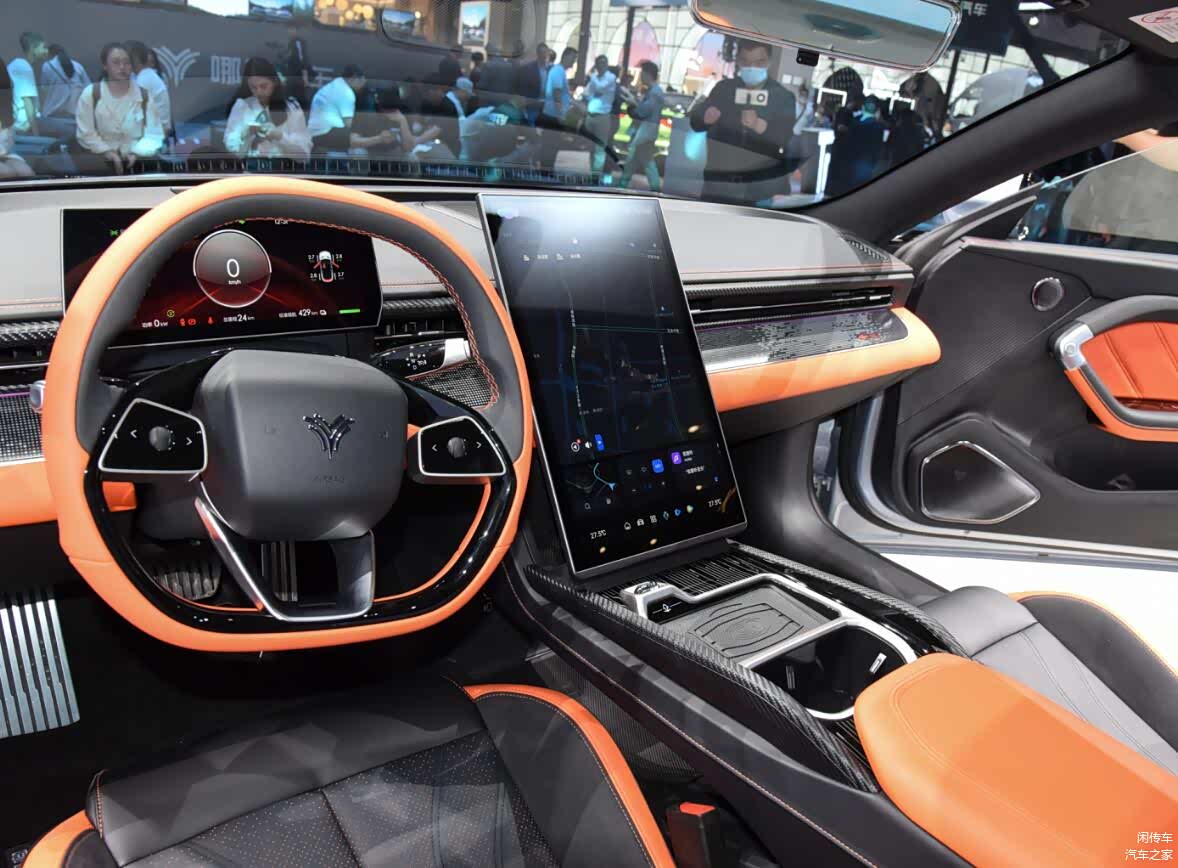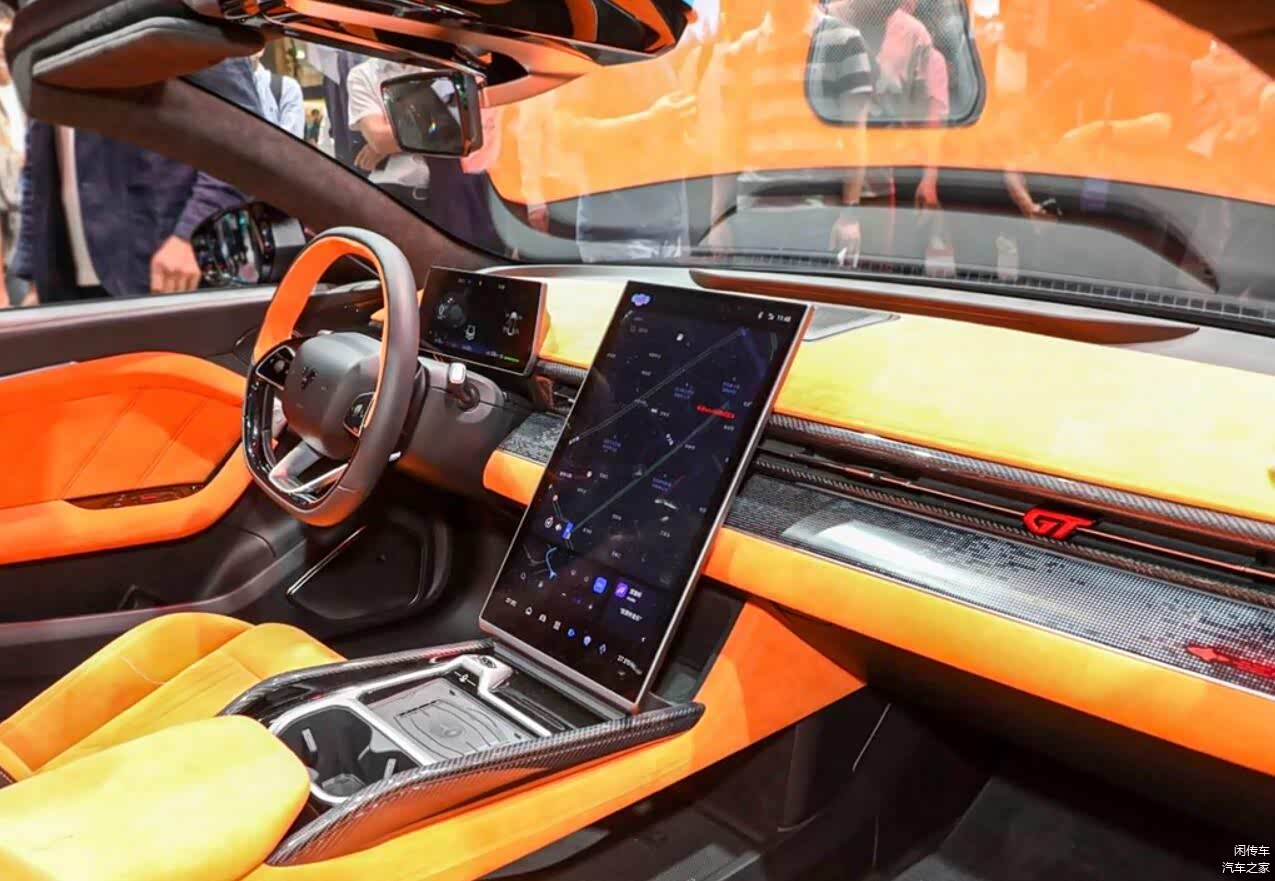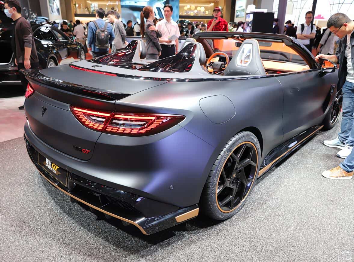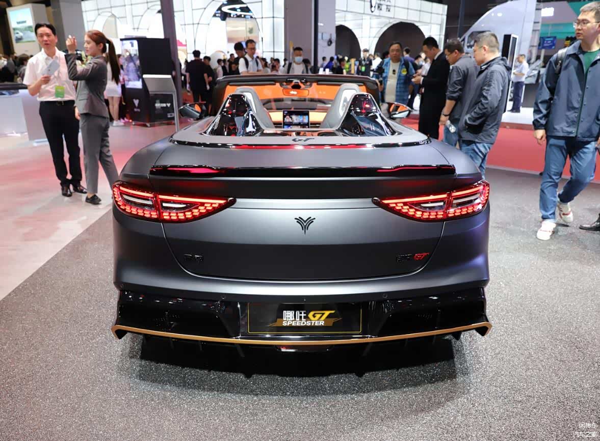 而在车尾部分,尾灯也采用了和大灯对应的环形结构,与硬顶版没有区别,但追加了翘起的小尾翼,增强了运动感。而后杠部分取消了硬顶版的环形结构,变为了更加夸张的扩散器,与整车的风格形成统一。在内饰部分,新车的设计层面当然也不会与运动版本有任何区别,依旧采用了较为简洁的悬浮式液晶屏,配液晶仪表盘组成双屏系统的设计理念,没有HUD也没有副驾驶屏幕,但通体橙色的内饰配色还是能刺激驾驶者的运动神经,同时新车依旧是四座布局,这一点要比MG Cyberster更具灵活性和实用性,头枕后方还有着大面积黑色工艺装饰的防滚架,造型进一步增强了设计感。