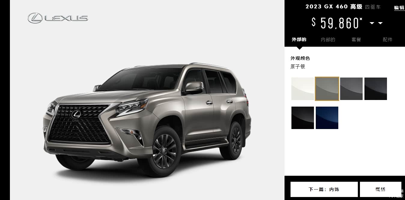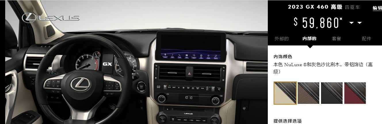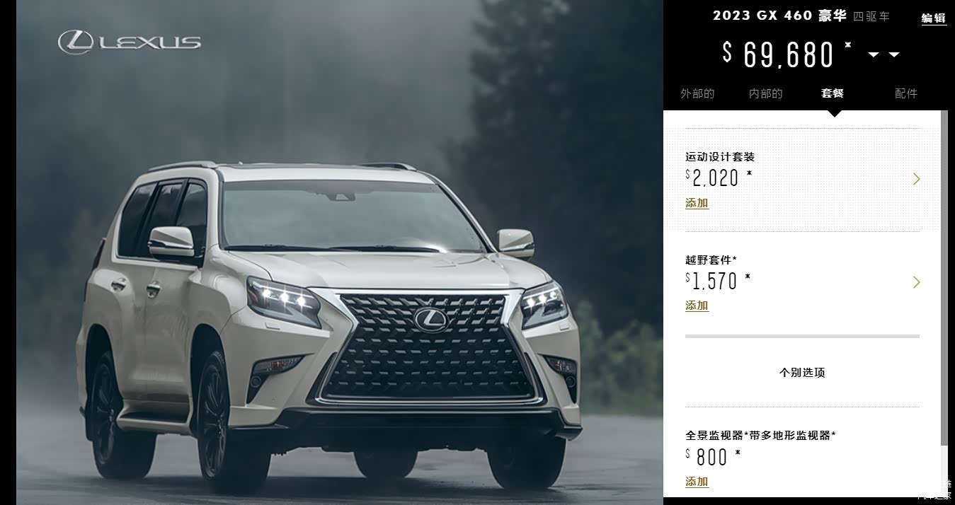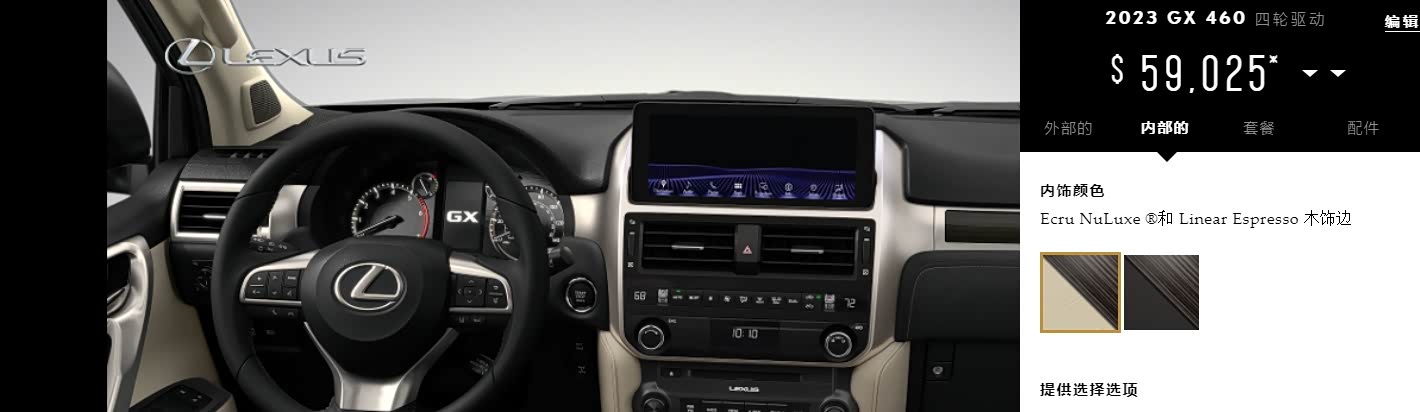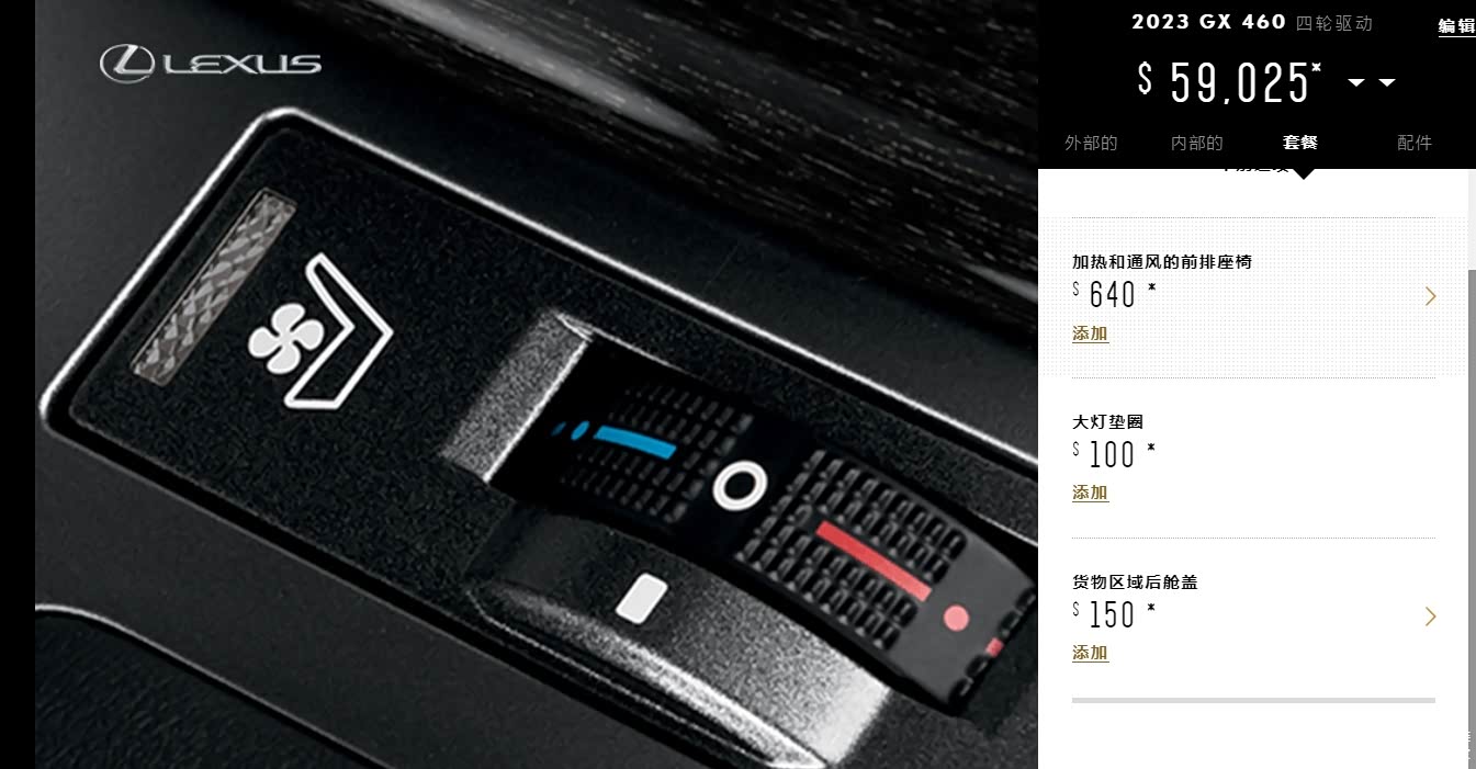 22款雷克萨斯GX460标配$55,425:⭕标配配置在底部、不能选任何包、可单选前排座椅通风$640、大灯垫圈$100。(车源最少,配置太低)加版雷克萨斯GX460:详细配置选配表 一目了然点击跳转