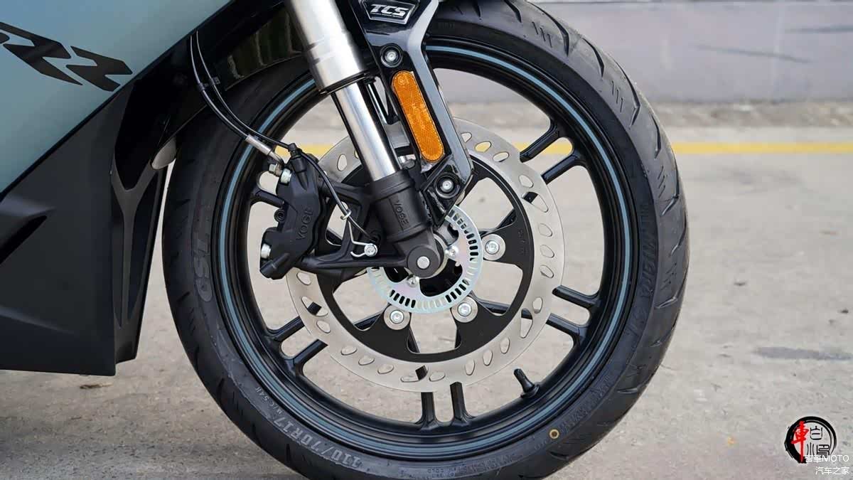 硬件方面,减震系统采用倒置前叉+多连杆结构中置后减震组合,软硬适中,可以让驾驶者在行驶过程中感受到舒适和稳定的驾乘体验。刹车系统采用前后盘刹以及ABS制动系统和TCS牵引力控制系统的双重保护,对新手来说不要太香。