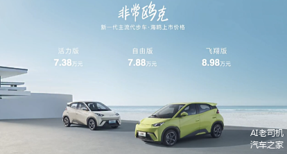 4月26日,比亚迪“海洋生物”系列的第三款产品——海鸥正式上市,新车共推出3款车型,售价区间为7.38万-8.98万元。海鸥定位为纯电动小型车,基于e平台3.0技术打造,续航方面,新车装备刀片电池,提供305km和405km两种续航版本。