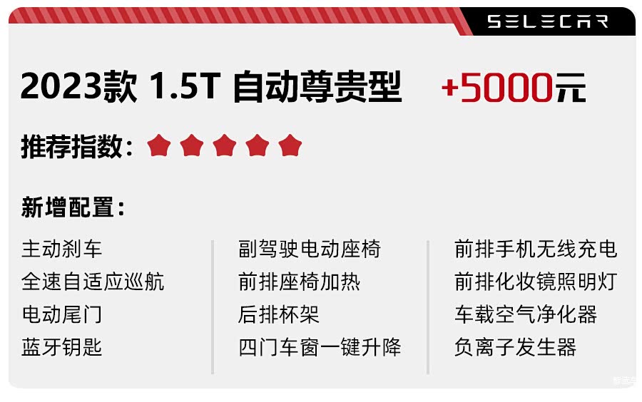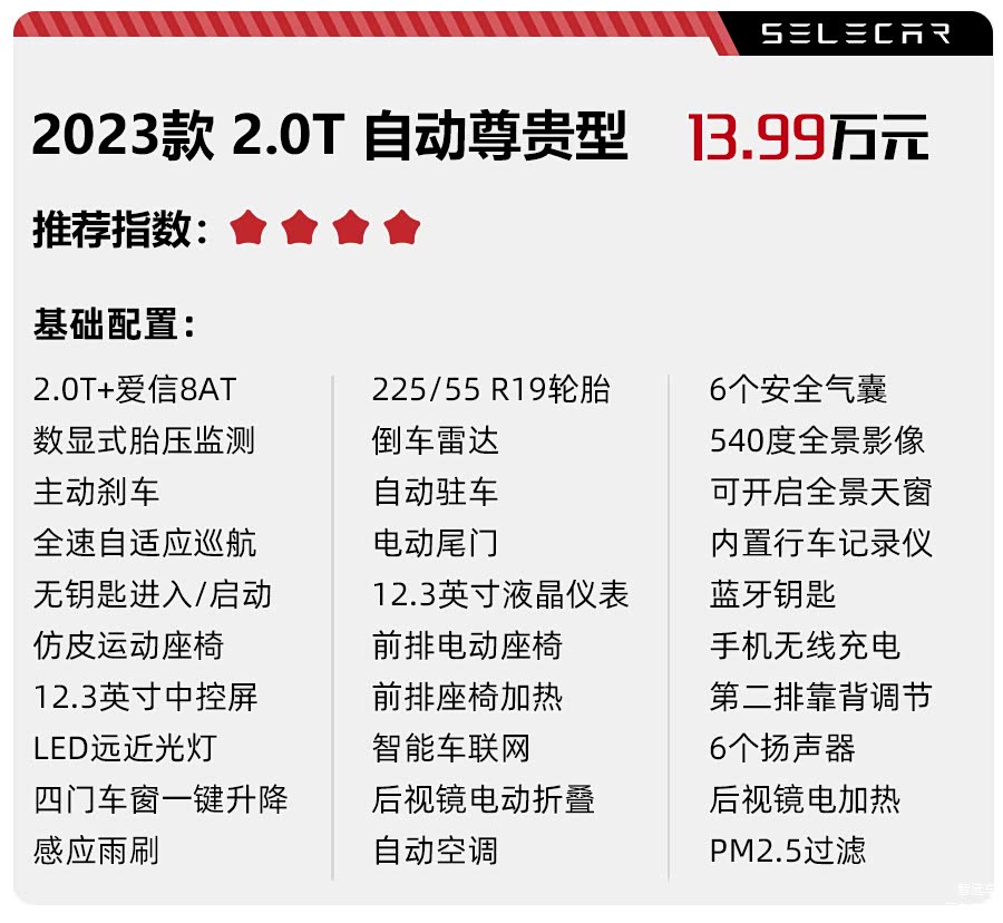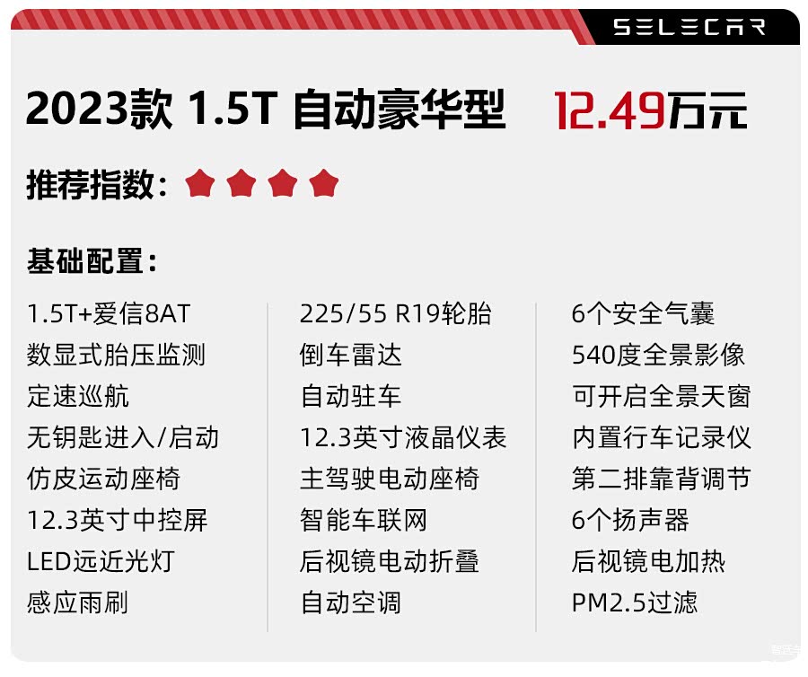 在这里我先给出购买建议:首推大家选择指导价12.99万元的2023款 第三代 1.5T 自动尊贵型。