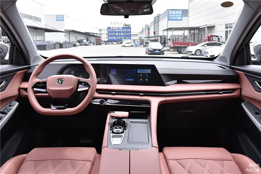 内饰方面,2023款长安CS75 PLUS的变化不大,整体的质感依旧在线。我特别喜欢它的双联屏,看起来很有科技感。另外,游艇式电子挡杆的设计也很出彩,方向盘样式也比较精致。配置自然是不用担心的,像是双12.3英寸联屏、360度全景影像(带透明底盘)、仿皮座椅、可开启全景天窗都是全系标配。