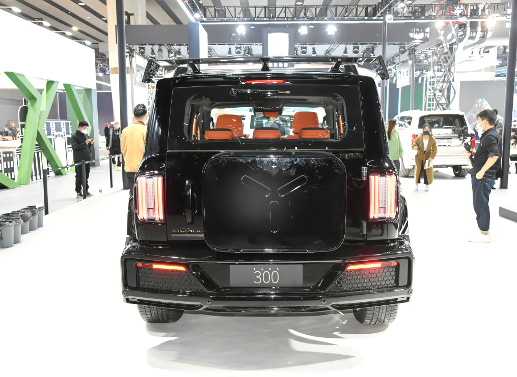 尾部方面,坦克300赛博骑士造型设计比较显眼,顶部带有碳纤维材质的扰流板,两侧配备有竖向尾灯组。当然最具亮点的还是中部的矩形备胎罩,凸显了科技运动的气息。
