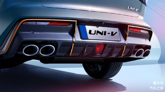而在老款车型上需要选装的电动尾翼和电动掀背尾门,2023款UNI-V升级为了全系标配。这些配置可不仅有装饰效果,电动尾翼可以在高速过弯或通过复杂路段时,起到一定的平衡作用,电动掀背尾门可以让身材娇小的人轻松关闭后备箱盖。