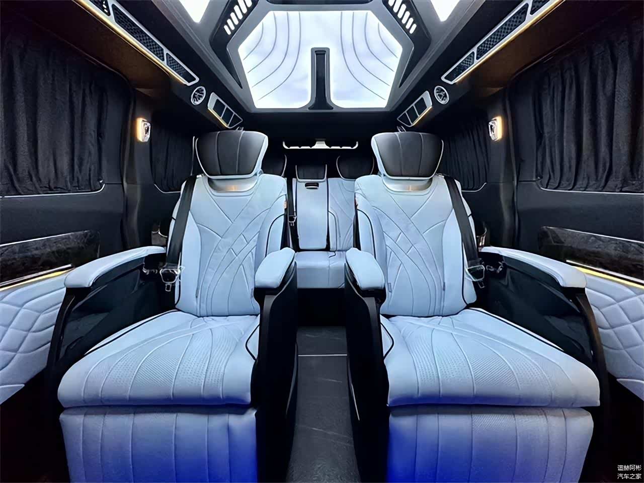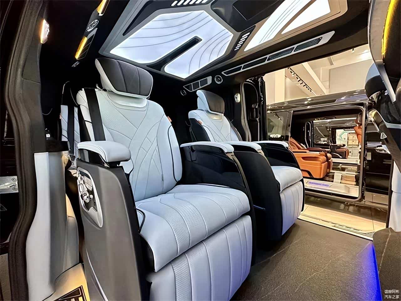 第2排的航空座椅也是多项的调节,通风,按摩,加热,旋转,腿托等功能性具备。人体工程学6点位智能气动按摩,长途出行也能有效的增加舒适性以及降低疲劳感。车顶独家设计开版的高达顶灯,冰蓝、极光白、暖橙三色可调,亮度也有三档可调,也能确保适时的氛围。