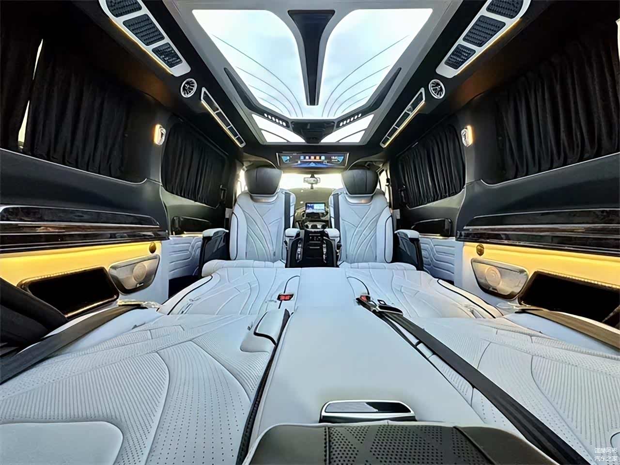 第三排座椅为标准的电动沙发座椅,可以通过隐藏在靠背中部扶手上的控制屏对座椅的靠背、腿托进行控制调节,必要时可以完全放平,形成一张豪华双人大床。这样一辆运动型商务车,又要在功能上组合不同的使用场景,不管是商务还是家庭用车无疑是个不错的选择!