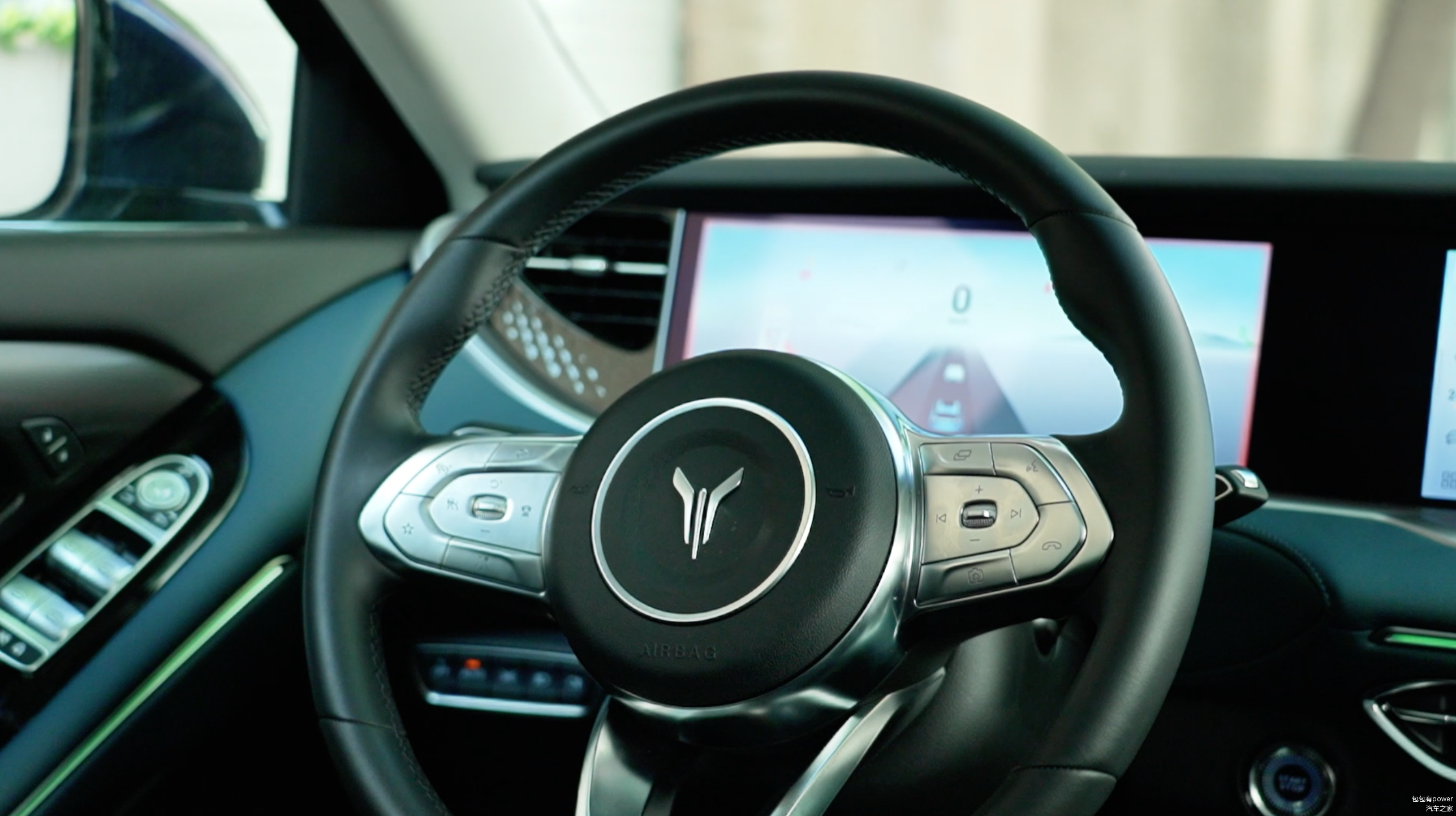在平直的仪表板成为内饰的视觉主体之后,方向盘在整车内饰中所占的占比明显小了很多,从视觉上也就构建了一种智能化出行时代里,车辆可以和驾驶者有更多交流的既视感。值得一提的是,为了实现大联屏仪表台的可升降,岚图FREE还巧妙的将副驾驶侧的安全体囊上移到了车顶,从而构建了一个更加全面的安全防护面积。