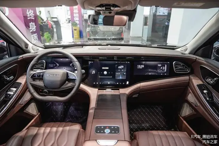再看内饰,全新一代星途揽月内饰设计也是由原奔驰设计师执笔打造,将奔驰的豪华氛围感进行了完美复刻,坐在车内会让人有一丝恍惚,分不清是星途揽月还是奔驰。最惊艳的是一体式超大三联屏设计,全液晶仪表盘(12.3英寸)、中控屏(15.6英寸)、副驾驶娱乐屏(12.3英寸),三连屏设计放在星途揽月大空间座舱内和谐不少,更广阔、更美观。配合新启用的电子换挡,把整个内饰科技氛围拉满。