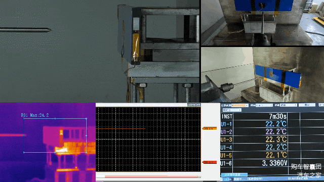 “电池针刺”试验通过钢针将动力电池电芯刺穿,造成电芯内部大面积短路,是行业公认的对电池电芯安全性最极端、最严苛的测试方式,试验堪称电池安全测试领域的“珠穆朗玛峰”。