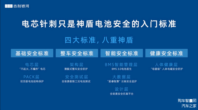 从架构十宫格专利到整车笼式防护;从快充安全到母婴级防辐射;从电池针刺不起火到电池包防爆设计;从行业领先的BMS3.0“电池医生”智控系统到24 小时星睿智算中心云端守护,吉利银河L7拥有“八重神盾、八级防护”,安全性远超想象,必将成为一款超越期待的中高端新能源车。