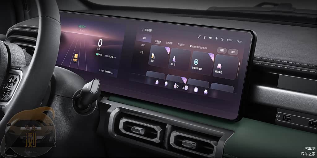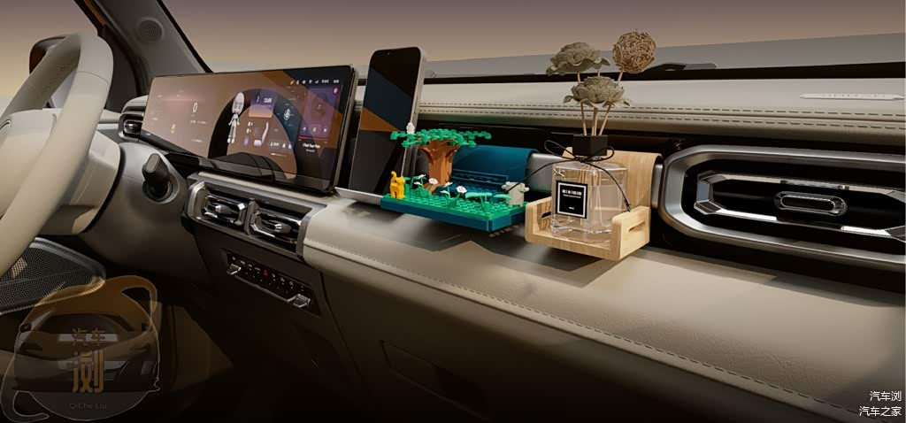 当然,行业首创的悬浮岛中控台设计,看上去由悬浮式双联屏、双层结构的中控台面,以及位于中央的挂架构成,中间的挂架方便放置手机等物品,也是别具风格。