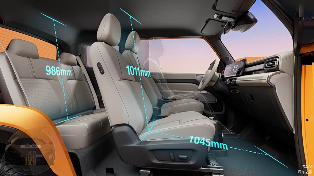 座舱前排布局来看,也是采用了宏光MINIEV等同门车型类似的无隔段设计,整个前排空间是贯通的,以此营造了更为开阔的乘坐空间。官方介绍,宝骏悦也的前排腿部空间长达1045毫米,一米多长的腿部空间,确实足够大长腿们伸展了。