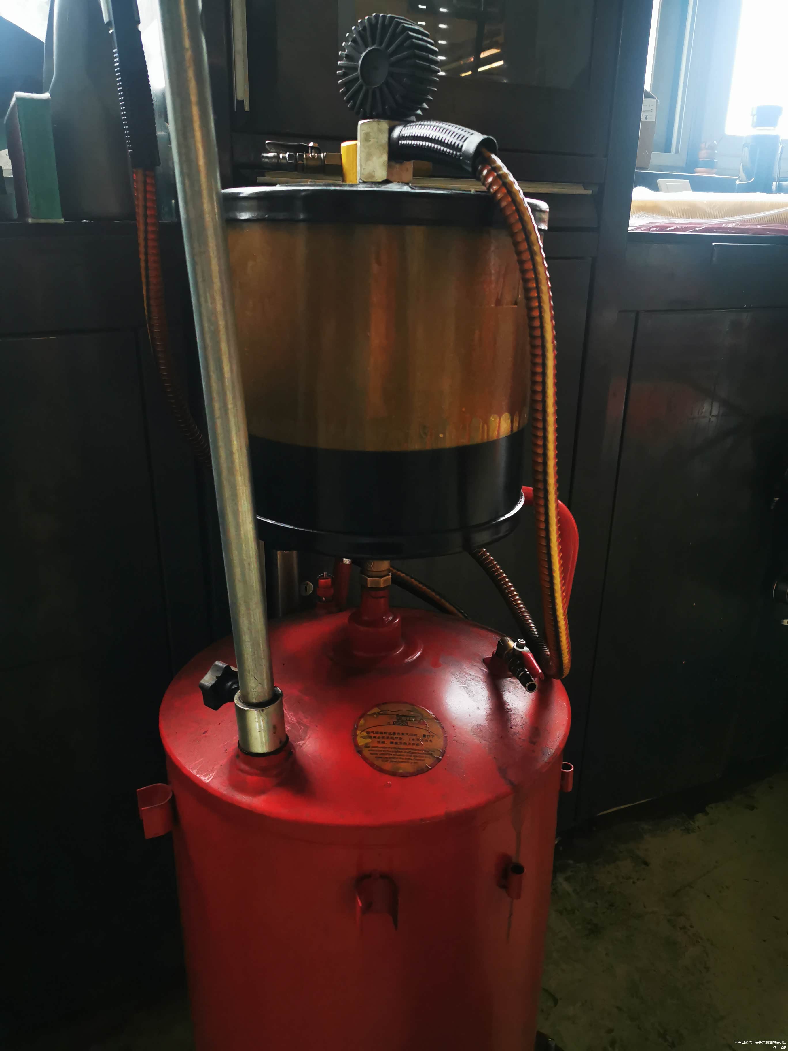 经过大约15分钟,发动机内机油基本抽干净了,小哥在观察机油是否已经抽干净。