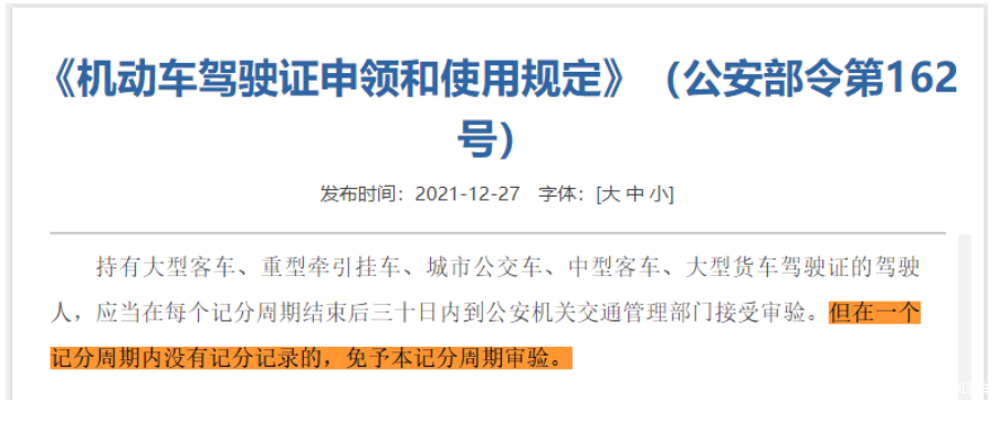 众所周知,驾驶证分为A类、B类、C类以及D类等多种类型,其中C、D类的驾照管理比较宽松,只要没扣满12分,就可以不需要年审。但是A类与B类这种准驾大车的驾驶证若出现扣分的情况,除了需要进行满分学习以外,还需要进行年审。但是如果在一个记分周期内没有记分记录的,则可以免予本记分周期审验。这也意味着,只要驾驶证没被扣过分,就不用跑腿审验,可以节省跑腿、排队的时间,也是可以比较实用的好处。