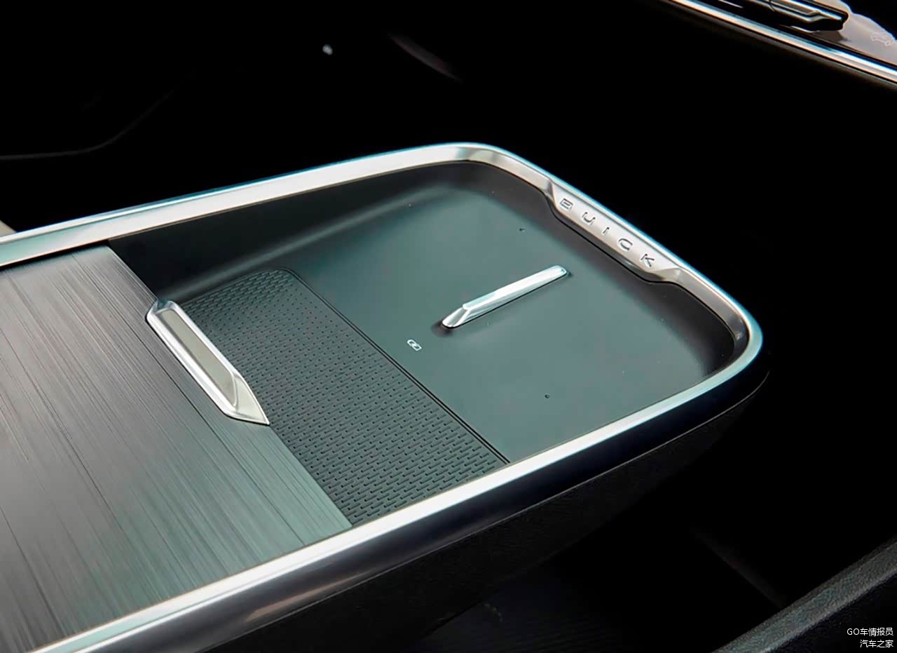 因为应用了怀挡,所以这部分地台就空了出来,可以看到这里设置了无线充电板,而且有一定的倾斜角度,不用担心刹车的时候手机飞出去。