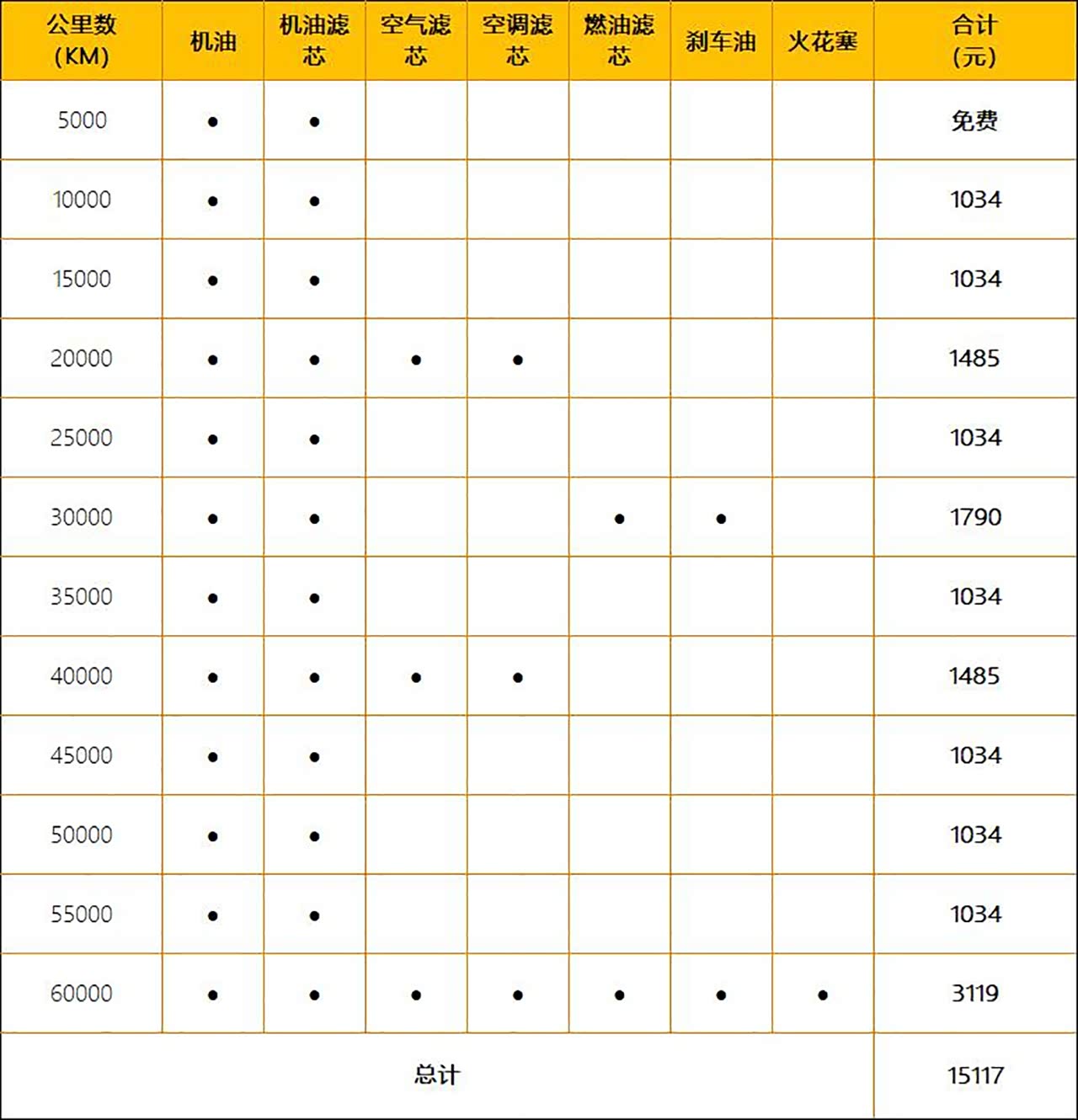 通用旗下的车型大部分都是每5000km一次保养,这部分其实大家自己适当考虑可以调整一下,毕竟全合成机油没有必要5000km就换。我们假设每年的行驶里程大约是10000km,那么到六年末,大约需要花费1.5万元在保养上,平均每年大概是2519元。对于这个级别的车型来说不算特别夸张,但是也称不上便宜吧。