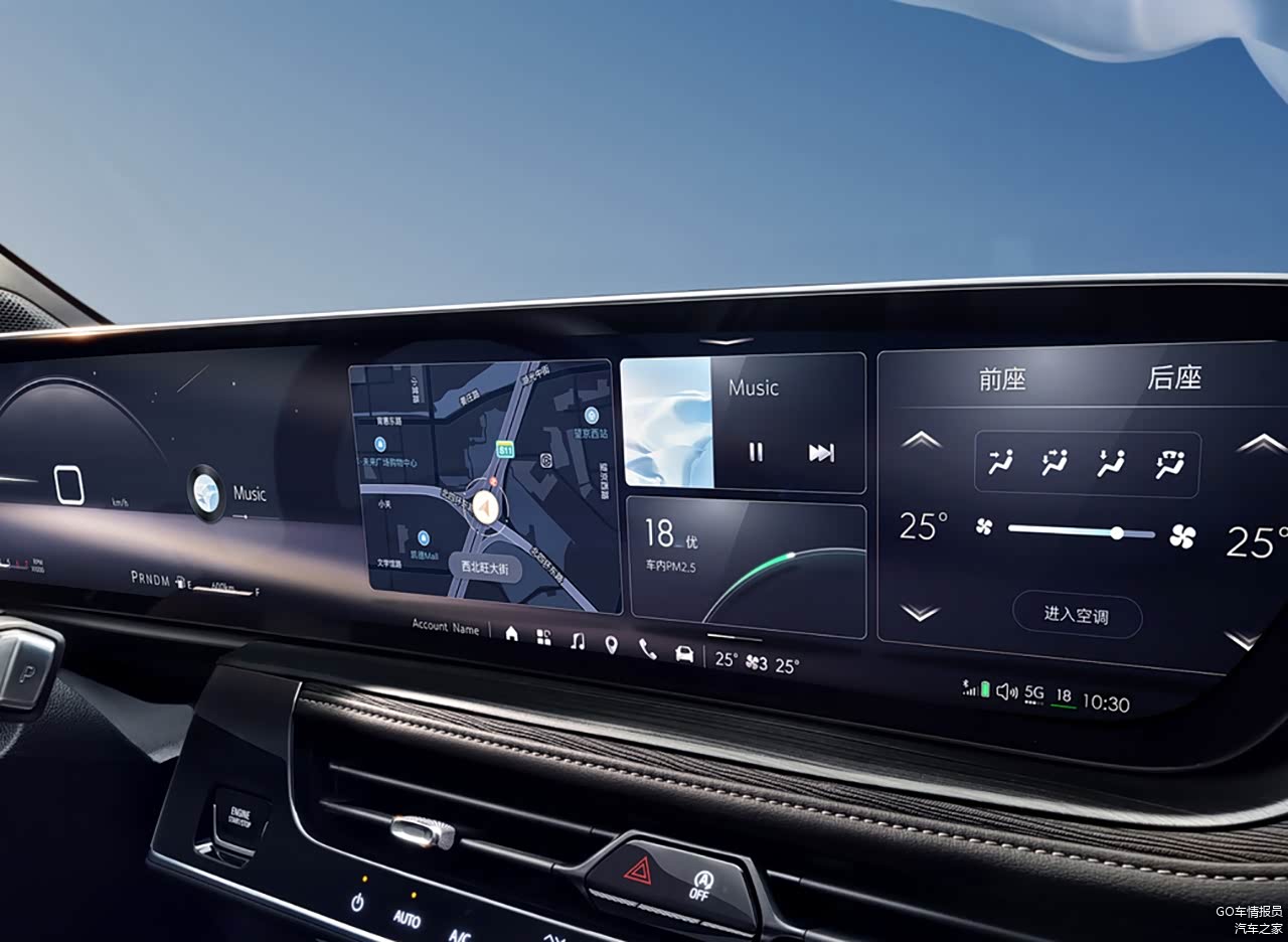 这块屏幕尺寸达到了30英寸,不能用连通屏来形容,贯穿屏更合适。屏幕的素质毋庸置疑,UI设计也比较正常,可能不是很炫酷,但足够好用。