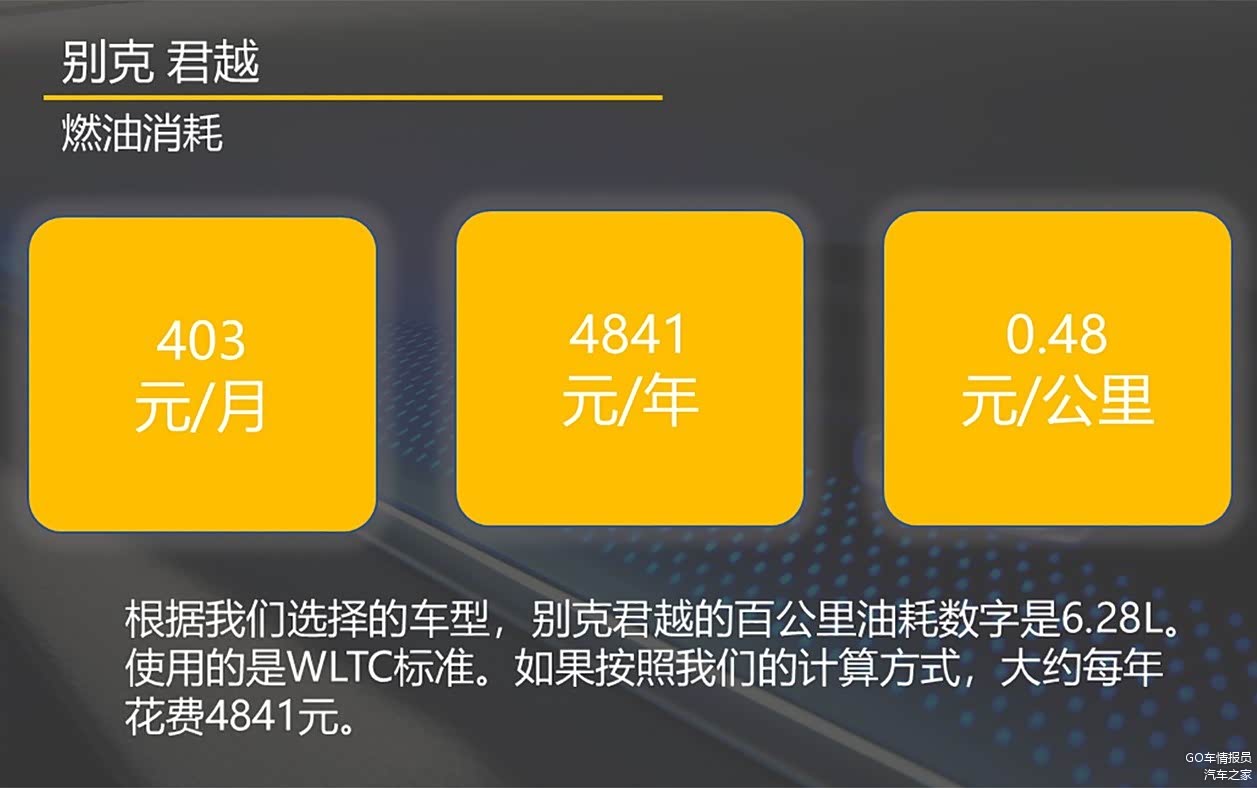按照我们设定的每年1万km行驶里程,别克君越大约年花费1.3万元,平均每月1000元出头一点,对于普通购车用户而言是能够接受的成本支出。但要说有多便宜嘛,倒也不至于,至少不像它的售价来得那么有性价比。
