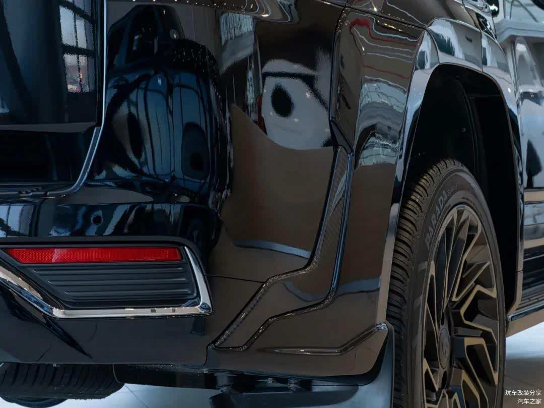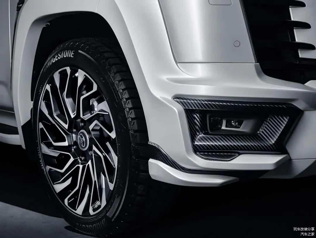 轮毂方面,升级到了22英寸锻造轮毂,视觉效果相当震撼,加上小扁平率轮胎,让这台LC300更加倾向公路性能。