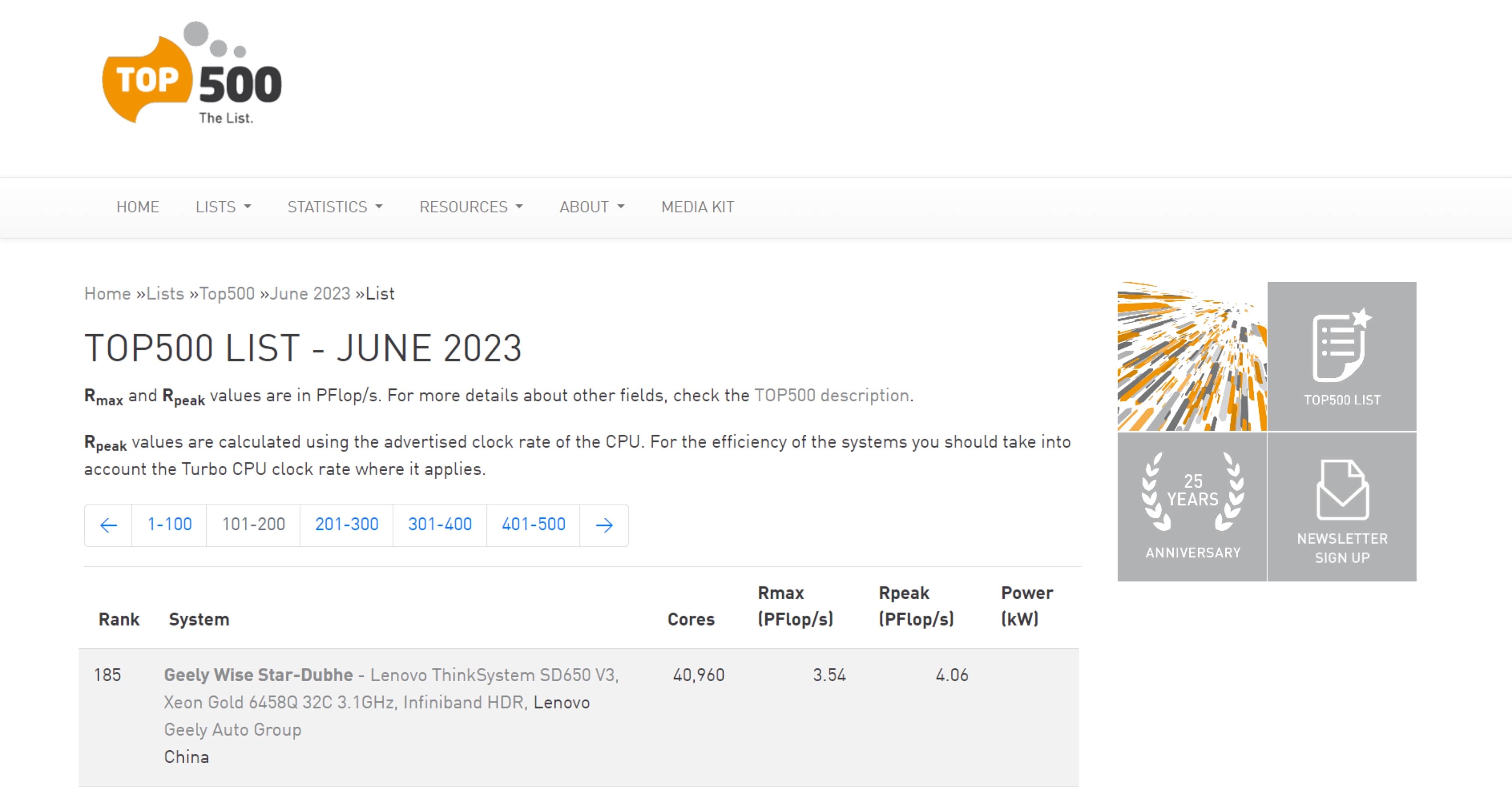 5月22日,在德国汉堡举行的国际算力大会( ISC 2023 )上,第61届全球算力500强最新榜单出炉,吉利星睿智算中心·智能仿真平台(Geely Wise Star-Dubhe)跻身榜单第185名,算力位居中国上榜制造业第一,吉利也成为首个进入全球算力500强的中国车企,开创了中国汽车智能研发领域的新里程碑。