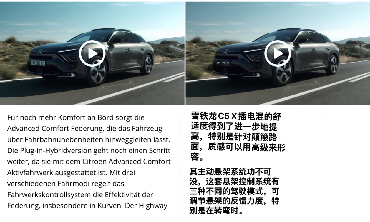 可见,雪铁龙C5 X插电混合动力版本将原来诟病的板悬和1.6T的问题都已经解决了。