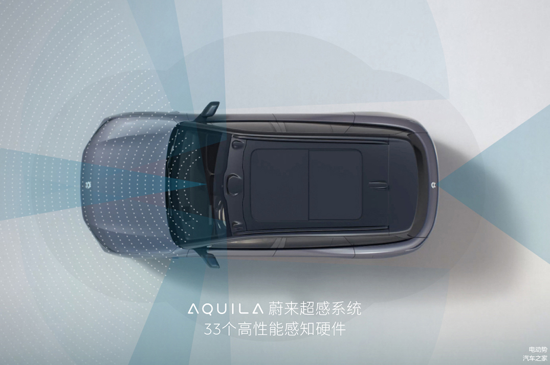 智能驾驶方面,全新ES6标配HUD、ADB智能多光束大灯,拥有激光雷达在内的33个高性能传感器,包括1个超远距高精度激光雷达、7颗800万像素高清摄像头、4颗300万像素高感光环视专用摄像头、1个增强主驾感知、5个毫米波雷达、12个超声波传感器等,在Aquila蔚来超感系统加持下,激光雷达配合前视摄像头进行自动探测路况,指引照明系统实现光束均匀分布,避免干扰同向或对向车辆,使车辆行驶更安全。另外,全新ES6全系标配ADAM蔚来超算平台,搭载四颗NVIDIA Drive Orin X芯片,总算力高达1016 TOPS。