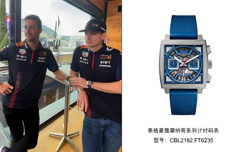 早在2021年,同样是在摩纳哥,同样是冠军。维斯塔潘腕间的泰格豪雅摩纳哥系列钛金属腕表,凭借独特的方形表壳、熊猫表盘,就给很多表迷们留下了深刻的印象。