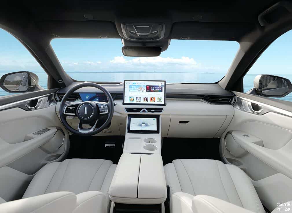 在内饰方面,新车配备了14.6英寸悬浮式中控屏,下方还配备有9英寸触控板,此外,新车还配备9.2英寸液晶仪表+AR-HUD的组合,科技感十足。