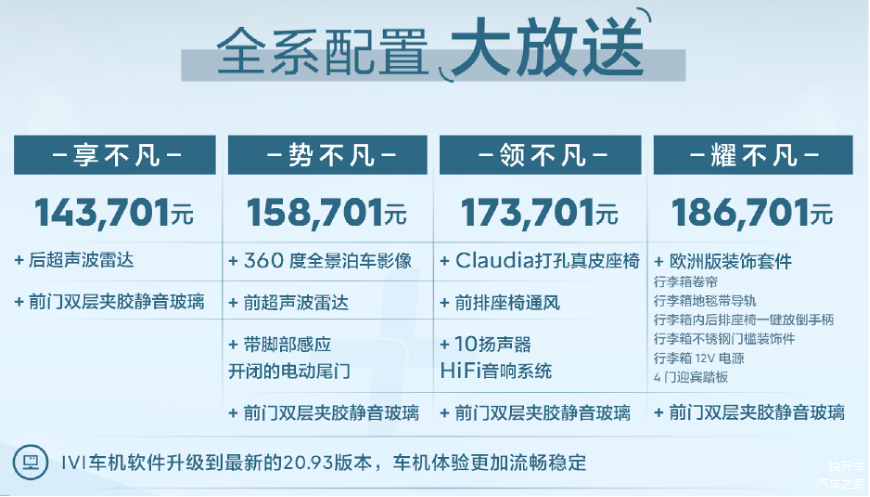 与此同时,凡尔赛C5 X 2023款领不凡还拥有Citroën HIFI工程师团队调校的10扬声器HIFI音响系统,搭配全系标配的前门双层夹胶静音玻璃,每天都能沉浸在音乐中以愉悦的心情出发,可开启全景天窗亦大幅增加了空间的开阔感。而全新雅阁260TURBO 舒适版,同样仅有很基础的4扬声器音响和普通电动天窗,即使有主动降噪功能,营造的声乐效果依旧有些细节欠缺。