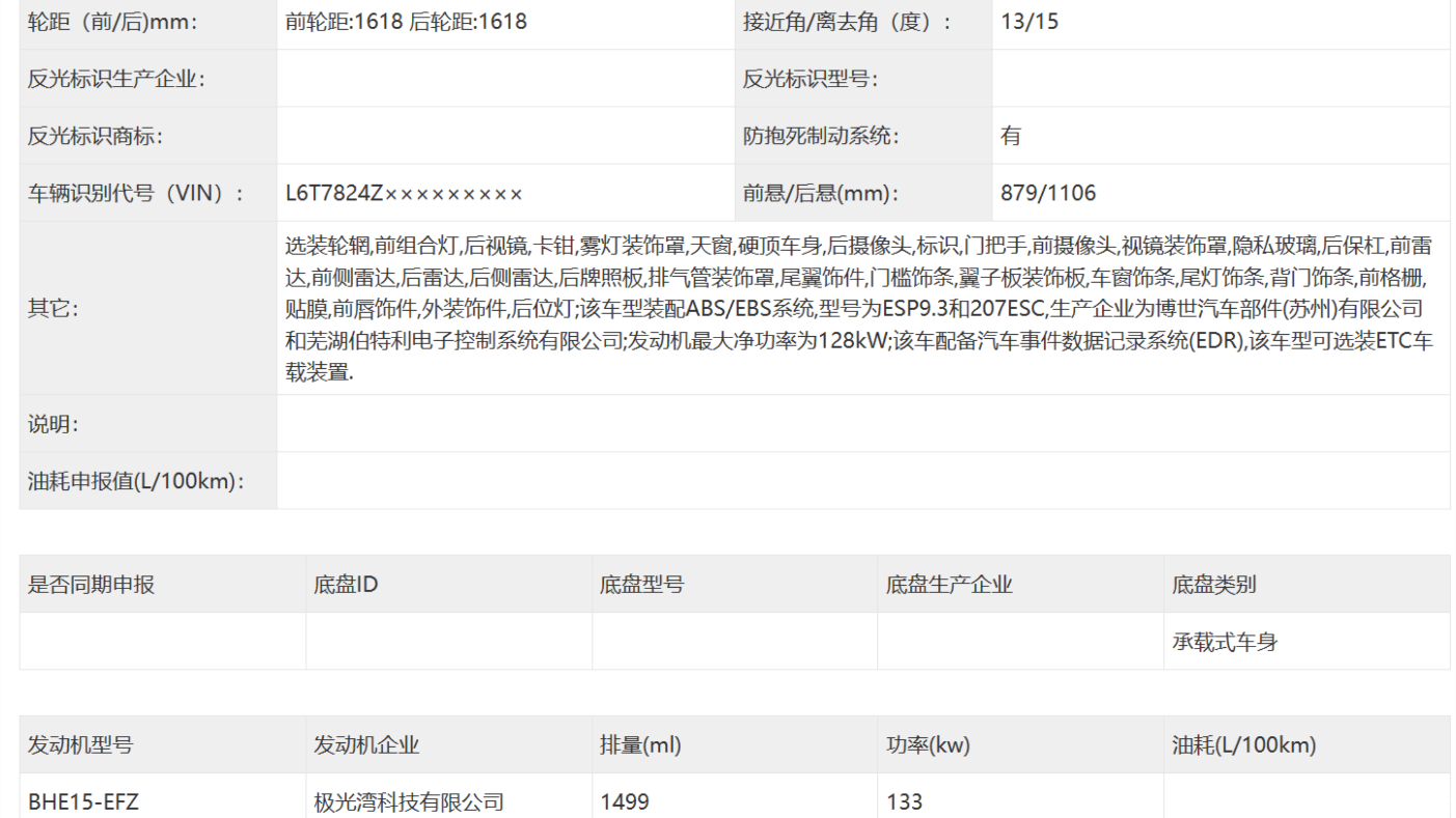 这次星瑞新增的1.5T车型,根据之前的申报信息来看,其发动机型号为“BHE15-EFZ”,它和吉利博越L、博越COOL等1.5T车型一样,用的属于是同一款发动机,而且在动力参数上都比较接近,因此预计在保养方面的差异不会太大。