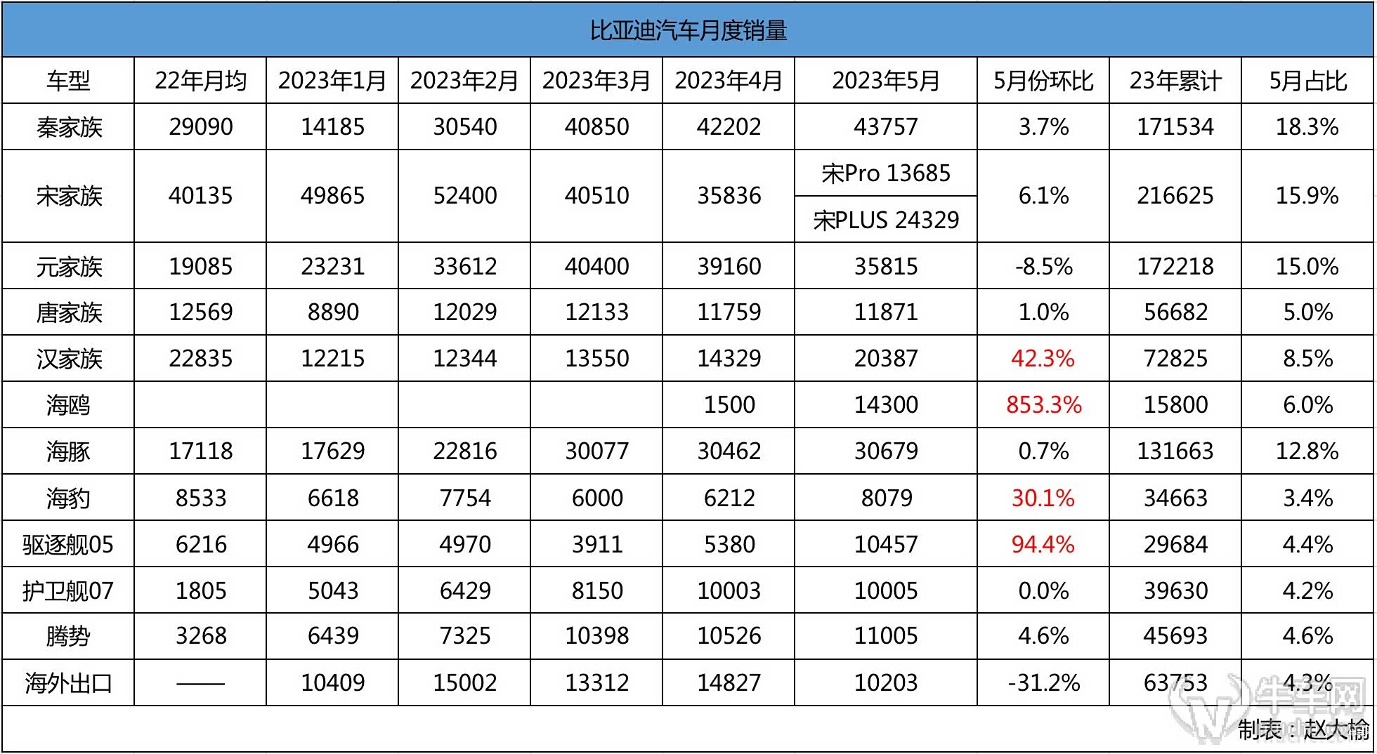 本期内容主要来聊一聊比亚迪5月份各个车型的销量情况。