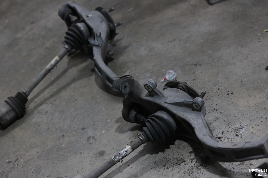 前悬挂部件拆干净,才把前半轴及羊角卸下来...