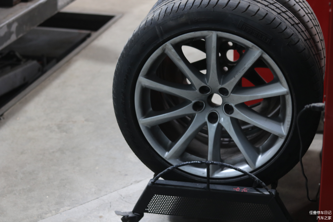 轮毂咱们检测下来,划痕有点多,有一只变形严重,这个应该是引起方向盘行驶抖动的主要原因了。
