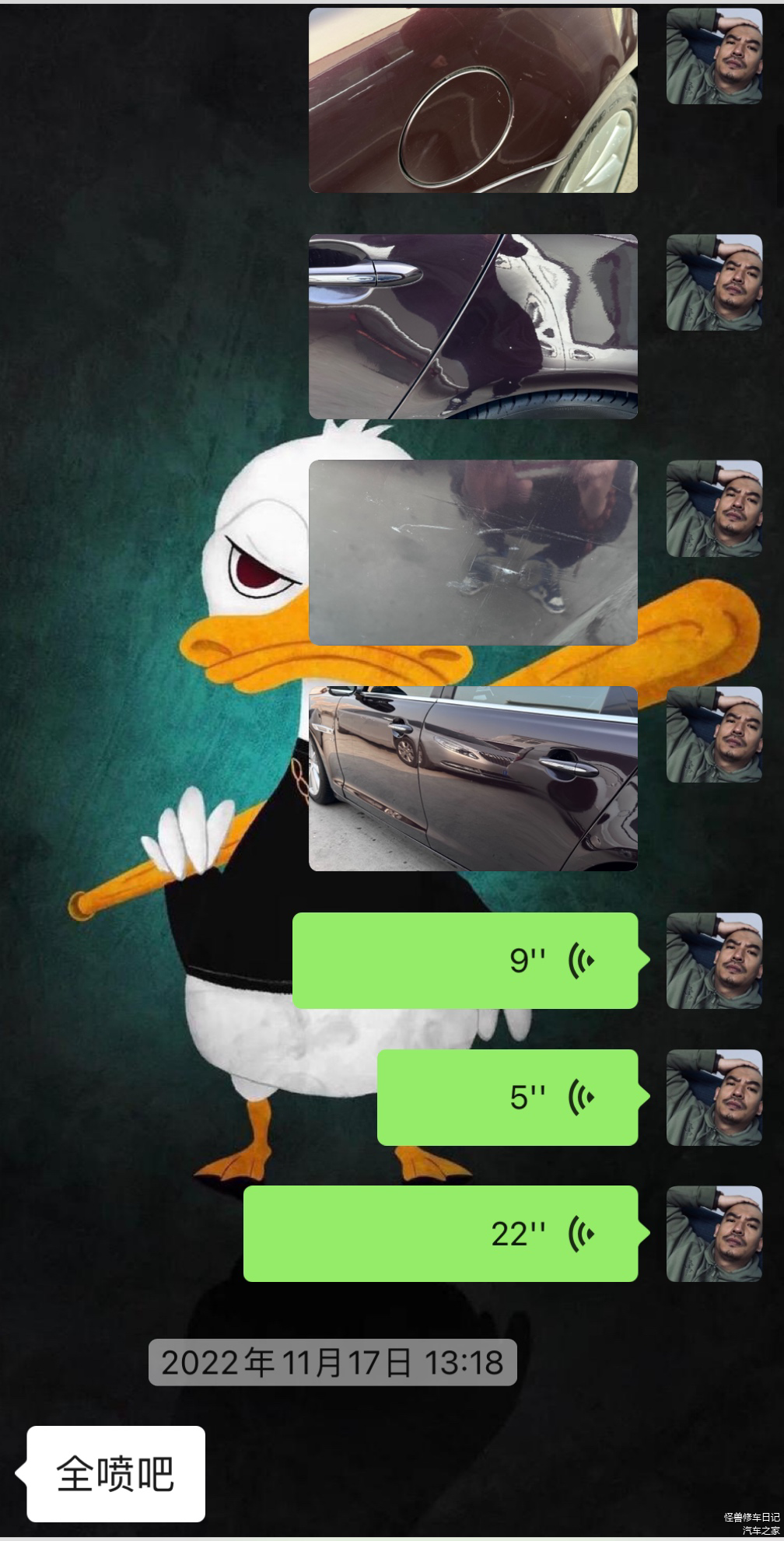 问车主老板想咋收拾,老板回了三个字:全喷吧。