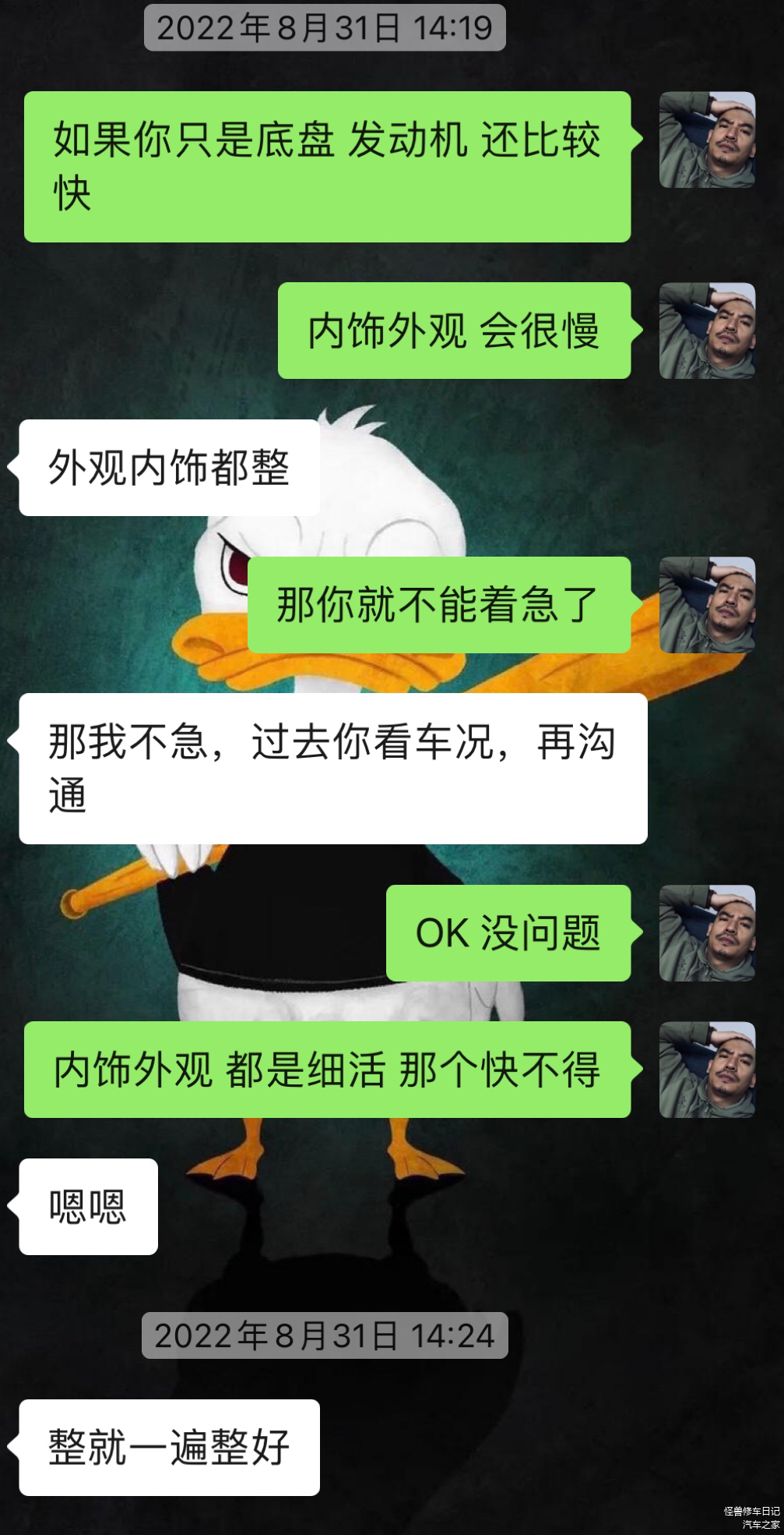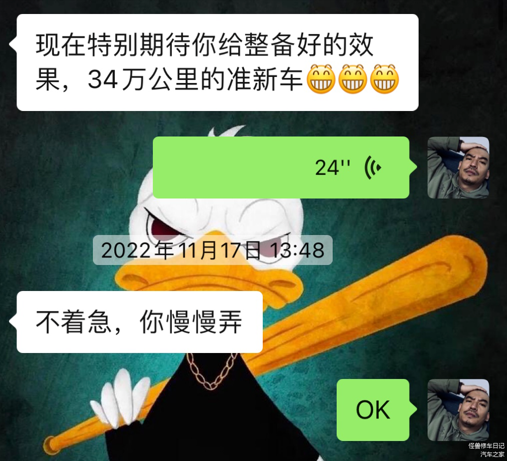车主对咱们的翻新效果可以说是满怀期待啊,已经坐等准新车回去了。