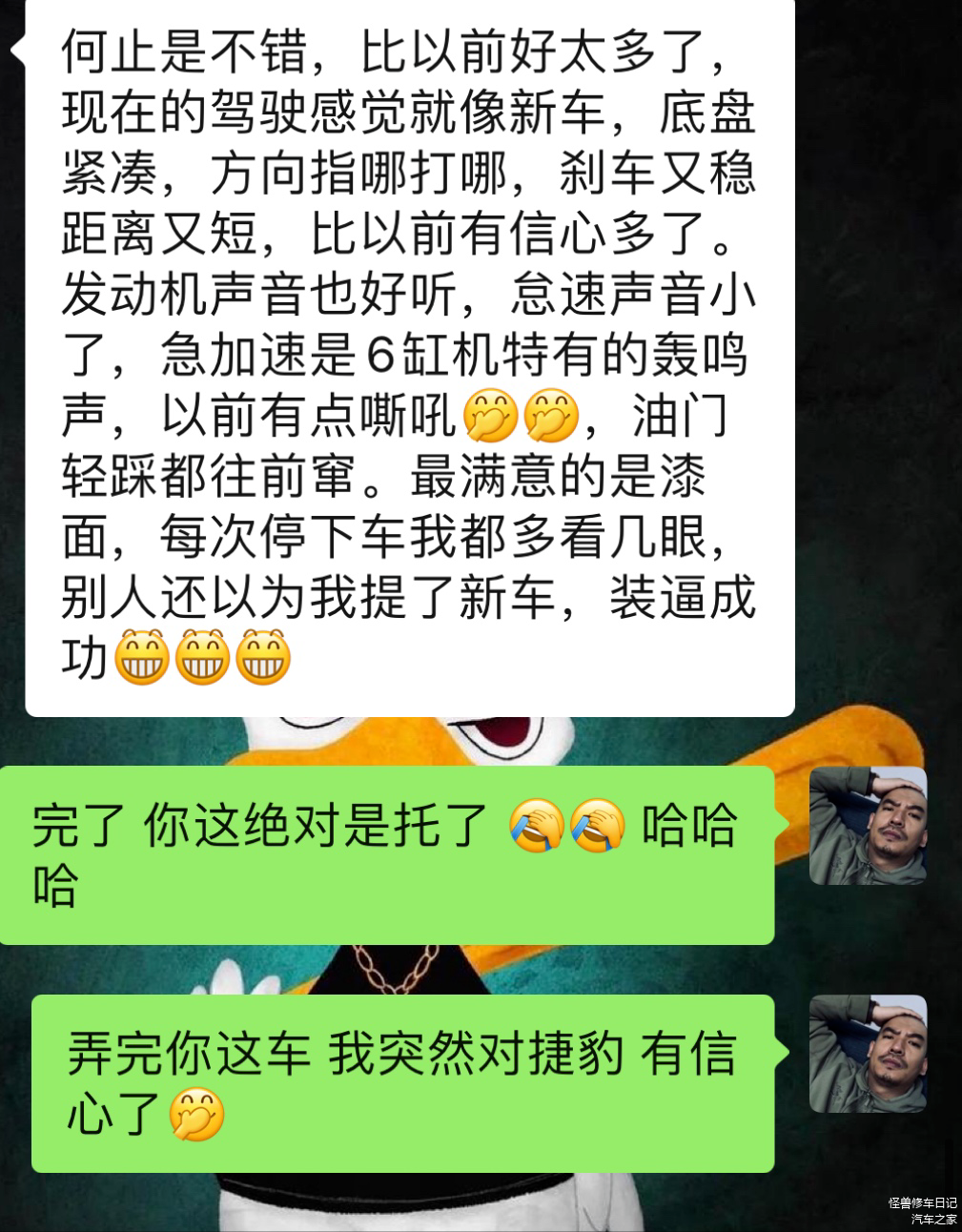过了一天,车主把捷豹XJL的已知车况都发给我了,咱们就坐等收车开搞了...