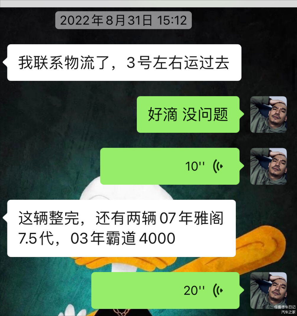 结果中途车主用这车有事耽搁了一个月,最后9月底才安排上物流。
