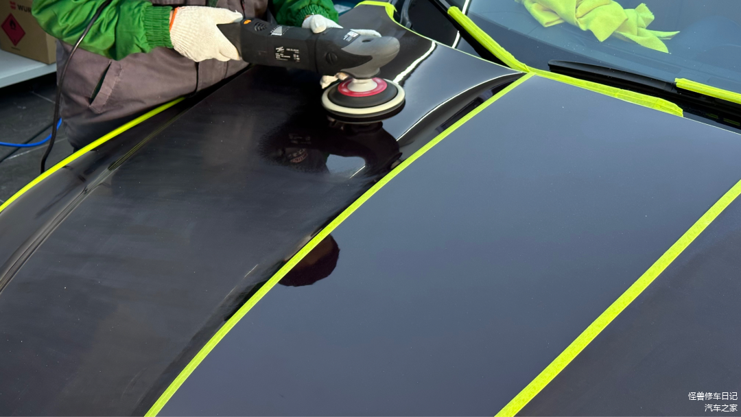漆面重喷完成后,来到美容车间,根据漆面厚度对全车做满砂处理,咱们要打造镜面效果。