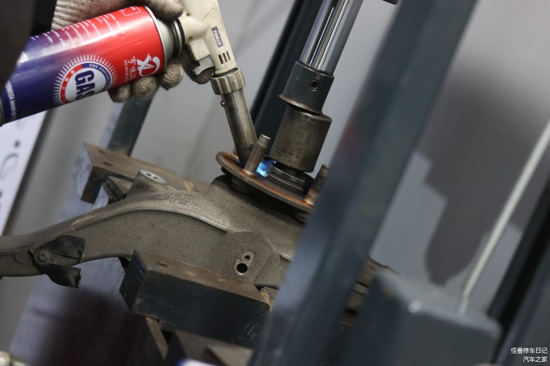 因为生锈严重,不是那么轻松能搞下来的,必须先烤烤火...
