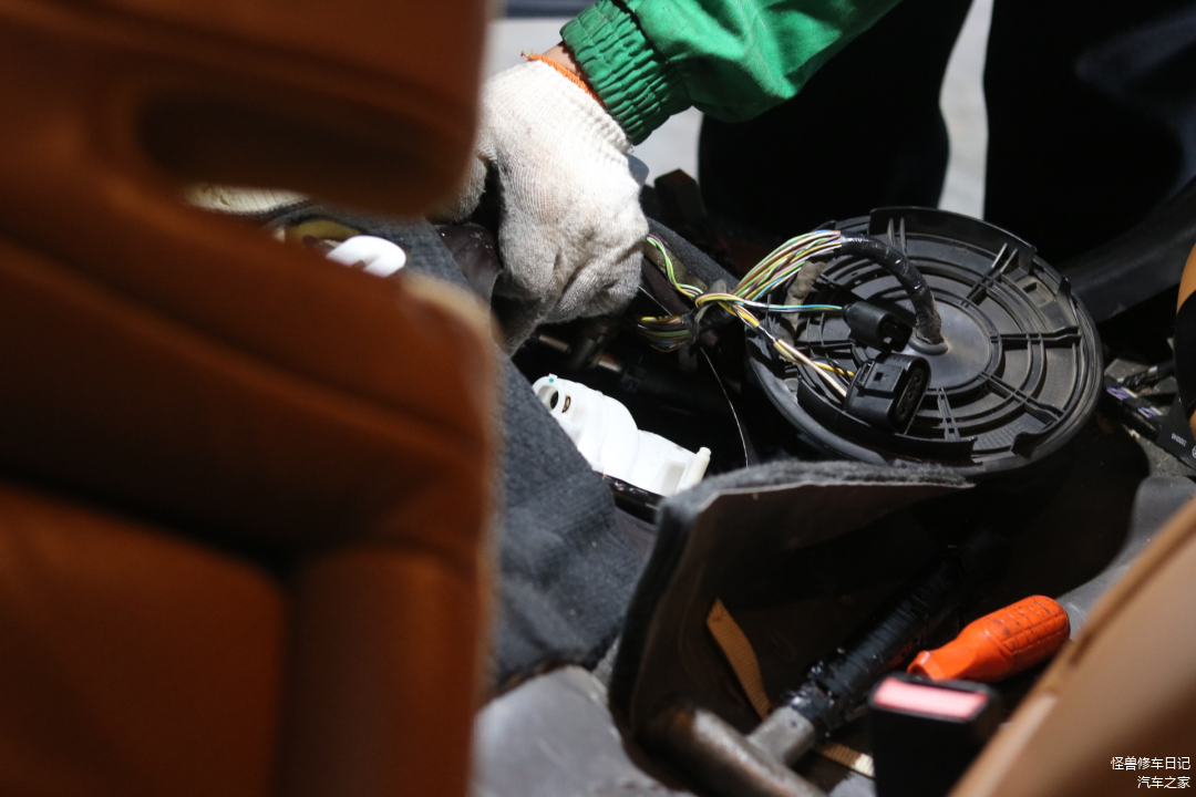 拆开后排座椅,更换一下汽油滤芯。
