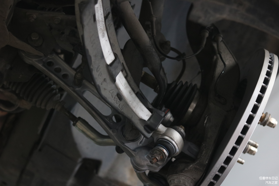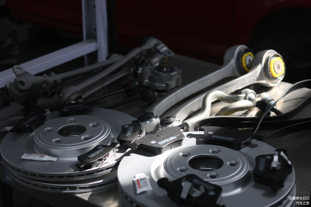 开始底盘整备,更换原厂部分摆臂、拉杆、方向机外球头及刹车盘皮等。