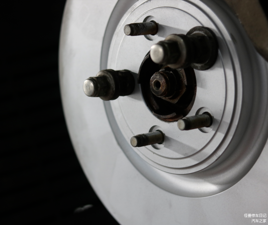 这刹车抖动的原因找到了,前轮法兰盘上的固定螺丝就剩四根了,有一根断了有些日子了,法兰盘生锈严重,断的螺丝外接面都生锈了。