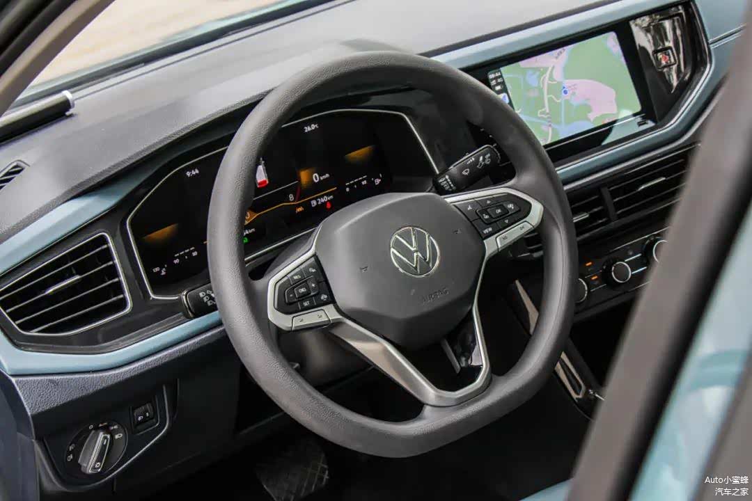 三幅式的运动方向盘,握感还不错,左右两侧集成了功能键,操作起来更为便捷。