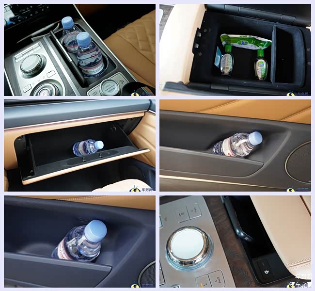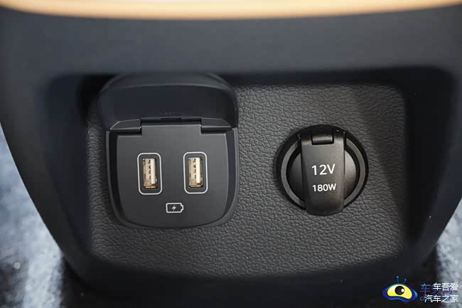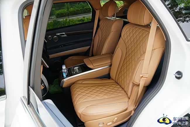第二排,车内座椅的采用了4座的布局,座椅舒适度相比驾驶席更豪华更舒适,不仅在腰部的支撑性还是坐垫的承托性都很到位,两张NAPPA真皮“大沙发”映入眼帘,两张座椅都带有一键切换姿态按键,能够轻松把座椅靠背往后仰,方便乘客躺着休息。第二排座椅还带有座椅通风和加热功能以及配备了两个SUB接口和一个12V电源插口供后排乘客使用,对于后排乘客来说舒适性自然没得说。