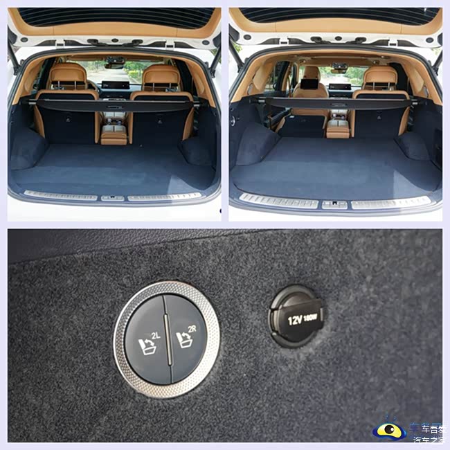 捷尼赛思GV80四座版后备箱空间非常宽敞,对于商务出行用户来说,放几个大尺寸行李箱也不在话下。后备厢侧面配备了第二排座椅一键折叠按钮,方便用户拓展后备箱空间。尾门采用了电动开闭设计,这应该是该级别车型的标准配置了吧!