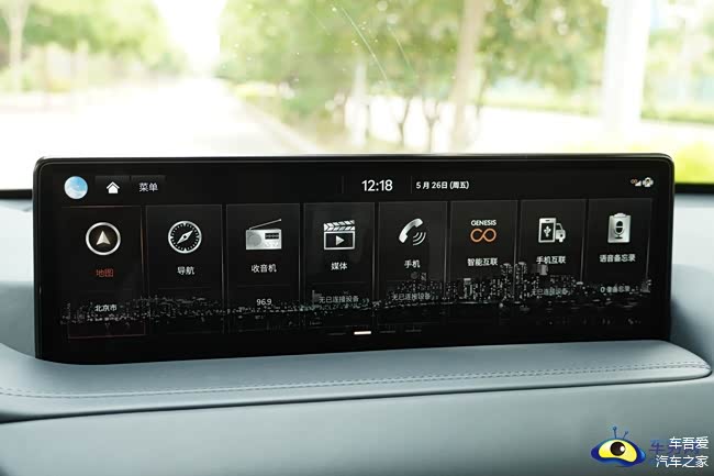 捷尼赛思GV80还配备了HUD显示系统,你需要的信息都在这个抬头显示屏内出现,比如左右后方来车雷达监测、导航等多处信息。