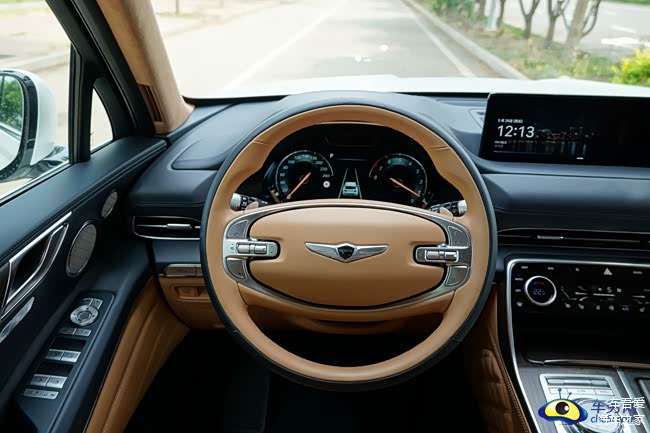 方向盘采用两幅式多功能真皮包裹方向盘设计新颖,握感舒适。大大的捷尼赛思飞翼Logo镶嵌在方向盘中央,豪华感油然而生。该方向盘支持四向电动调节功能。